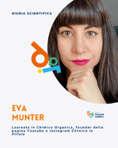 Eva Munter si è laureata in chimica organica a Bologna e al momento lavora all’Università di Bologna come assegnista di ricerca. Inoltre, gestisce il canale YouTube e la pagina Instagram @chimica_in_pillole dove raccoglie le storie degli elementi della tavola periodica per una community di oltre 85.000 iscritti. Nata a Trento, oggi vive a Milano.